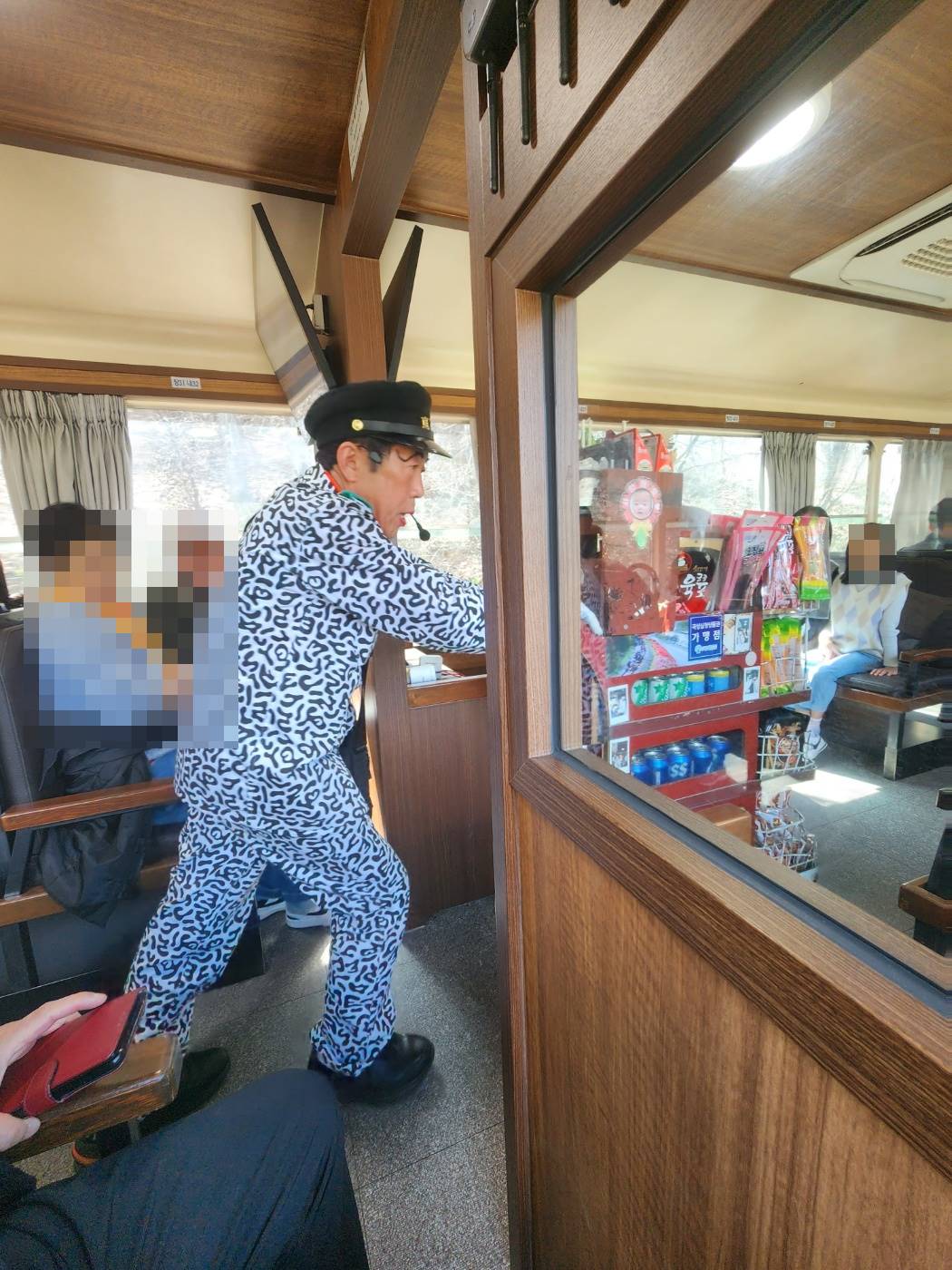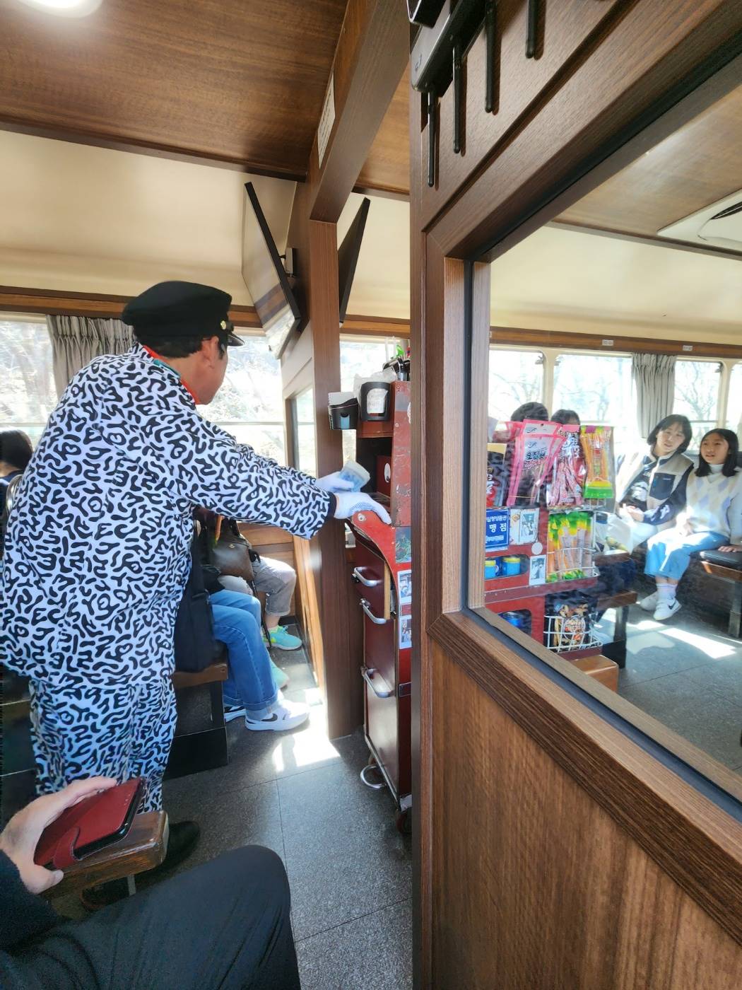 기차는 편도 약 15분 소요되고 중간중간 승무원?