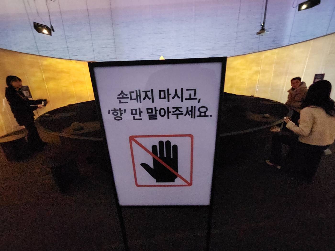 직접 들어가서 돌멩이의 향을 맡은 체험전시였는데 향기가 오묘하다고 해야하나 약초향기와 나무의 향기가 섞인 느낌?