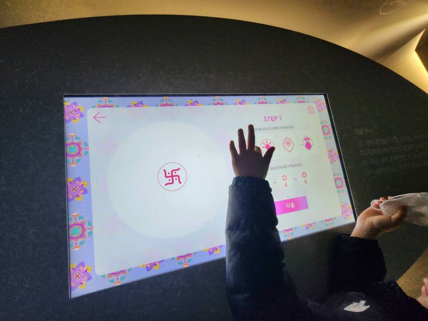 랑골리 만들기 - 어떤 문양같은 건데 자기 마음대로 선택하여 문양을 만들고 핸드폰으로 전송도 가능하다.