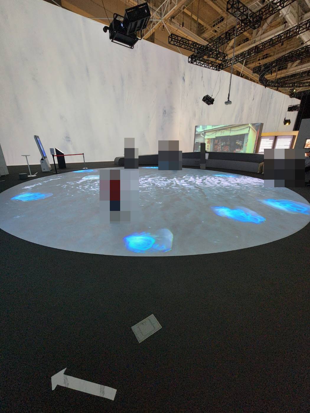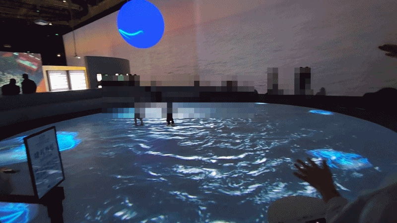 손의 움직임으로 하는거라 어떤 모양을 만들수는 없지만 터치없이 나의 움직임대로 선을 그려주고 그 선을 이 넓은 광장에 띄워주기 떄문에 아이들의 반응이 좋았고 국립아시아전당에서 AI기술도 체험해서 더욱더 좋았다.