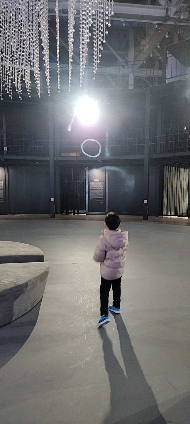 아이가 8세와 18개월이 있으나 8세는 어린이문화원에있는 키즈카페를 입장할 수가 없다. 7세까지였기 때문에 입장을 할 수가 없고 설령입장한다고 해도 유아들에 맞춘 키즈카페이기에 들어가도 재미가 없다. 그러나 사유정원에 있는 전시공간에 링? 수증기로 링을 만들어 계속 쏘아내고 있었다. 수증기 링을 따라다니며 깨고 쫓아가고 하는 놀이에 아이들의 체력을 소진시키기에는 안성맞춤이었다^^